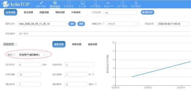 1、 支持用户并发模型(类似jmeter)、每秒新增用户数(Caps)与每秒保持在线用户数
