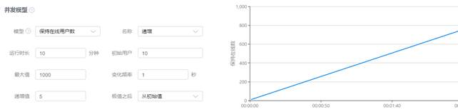 即每秒保持多少个虚拟用户(一个虚拟用户即一次脚本)在线,如果在线数(即在运行中的虚拟用户)达到要求,则不需要启动并运行新的虚拟用户。该模型目的是让系统在某时刻维持一定的运行用户数,因为如果使用速率/秒,无法精确控制在线数(有的用户运行快就结束,有的用户运行慢才结束)。