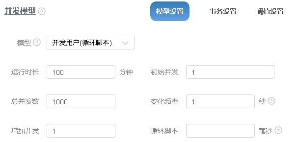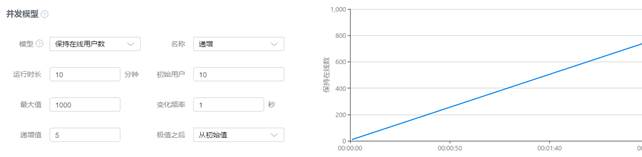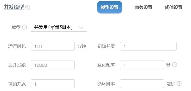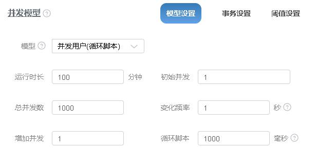 选择“用户并发模型”,然后总用户数即为并发数,速率即可控制每秒启动多少并发,通过每秒启动1个并发方式慢慢递增,也可以立即启动1000个并发达到总并发数。