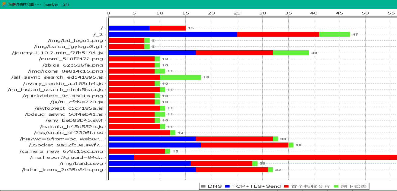 3) 每个HTTP请求花费时间,包括DNS、TCP、首个数据时间、剩余数据时间,与录制时间比较