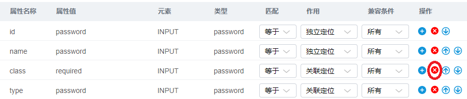 例如:下图需要删除第3行“class”这行,如果点击删除按钮(表格有很多个删除按钮,如果class变为第2行可能导致回放点击还是第3行)